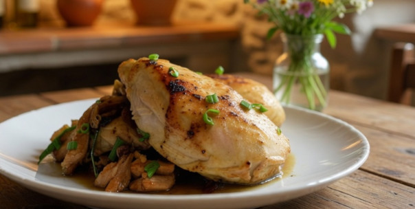 - Agrega un poco de mantequilla y sella el pollo 4–5 min por lado sin moverlo.